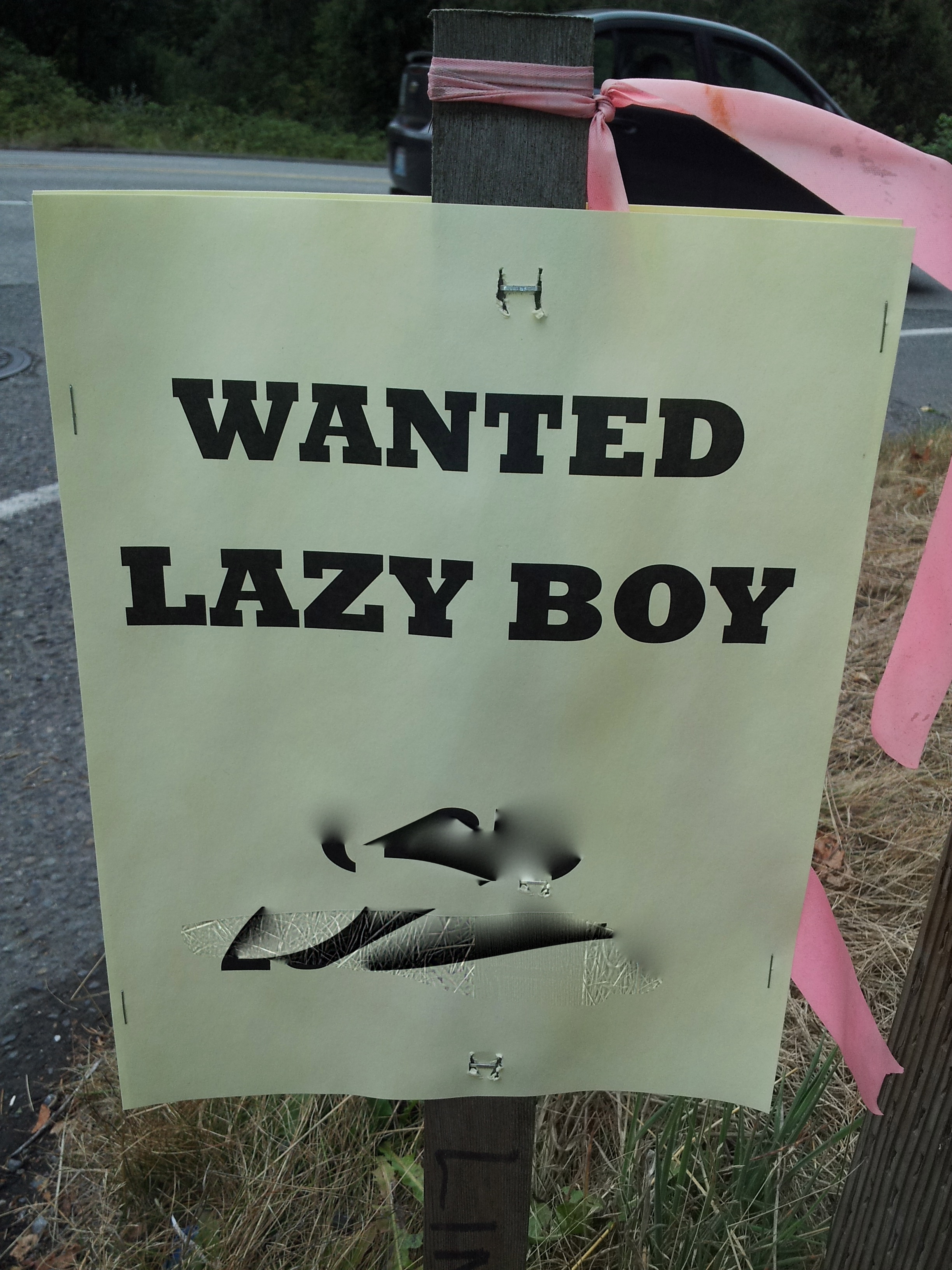 Oh yes, just what I wanted… A lazy boy??? I think not. I called the listed number to offer you up. However, they asked what you were worth and I told the truth. I couldn’t afford to pay them to take you away. I guess I am stuck with you lazy boy!