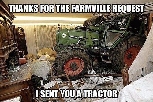 I love video games because they take my mind from a place called work. I press a button and the character on the screen does all the work. Hopefully when I press the button the character does something cool, like leaps tall buildings, runs really fast, or shoots laser beams out of his or her hands. When I play I game I don’t want to farm. I went to a farm once to help transport chickens from a truck to a cage. It was really early in the morning and it was a whole lot of work and it was stinky and I got paid maybe several dollars less than minimum wage, which was several dollars an hour at the time. So if I drive a tractor through your house when you send me a request me to play Farmville, you might know why now. Just saying.