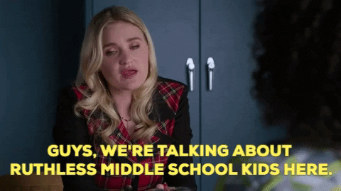 Do you want to know which school is everyone’s least favorite school of all time? It’s not elementary, and it’s not college and it’s not high school. That’s leaves…you guessed it…MIDDLE SCHOOL. DO NOT for love of all that is good and holy, ever put Baby in the corner, or Bitter Ben in the middle.