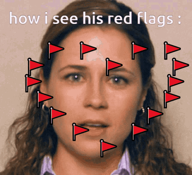 Yeah, we didn’t have a red flags badge in girl scouts, either. That explains a lot. Now I see them in so many people that I avoid almost everyone. Why are so many people so red-flaggy? 😬 Where are all the green-flaggy people hiding?